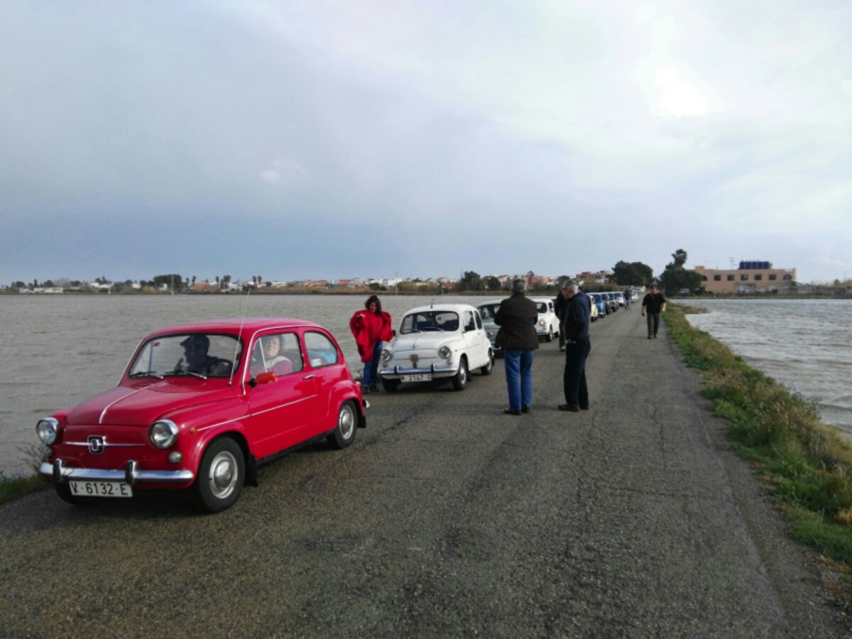 Organizamos esta primera salida del año sin tener en cuenta el pronóstico del tiempo, pero a pesar de la lluvia que caía nuestros pequeños coches no se quedaron en casa. Salimos desde Valencia en dirección al Restaurante El Graner en el Palmar una veintena de coches y a la llegada ya nos estaban esperando para almorzar. Después nos dirigimos a Sueca para visitar el Museo del Chocolate Comes. En el trayecto se nos averió un 600 pero entre varios lo arreglaron allí mismo y proseguimos la marcha. Volvimos a comer al mismo restaurante de El Palmar una exquisita paella en el corazón de los arrozales. Por la tarde vimos un video de la vida y trabajos en la Albufera. Os damos las gracias a los socios participantes por acudir a la excursión sabiendo el tiempo que nos iba a hacer.